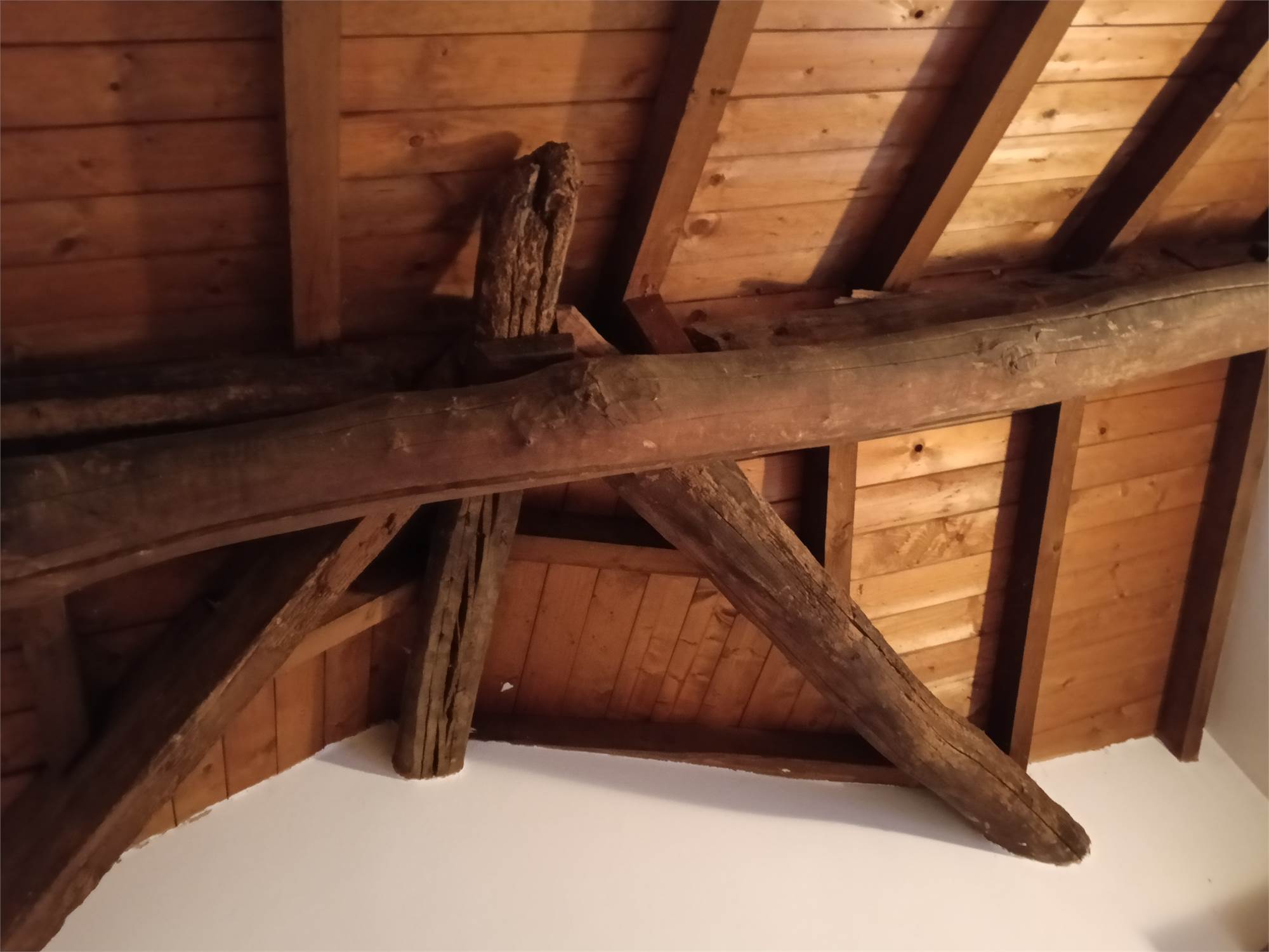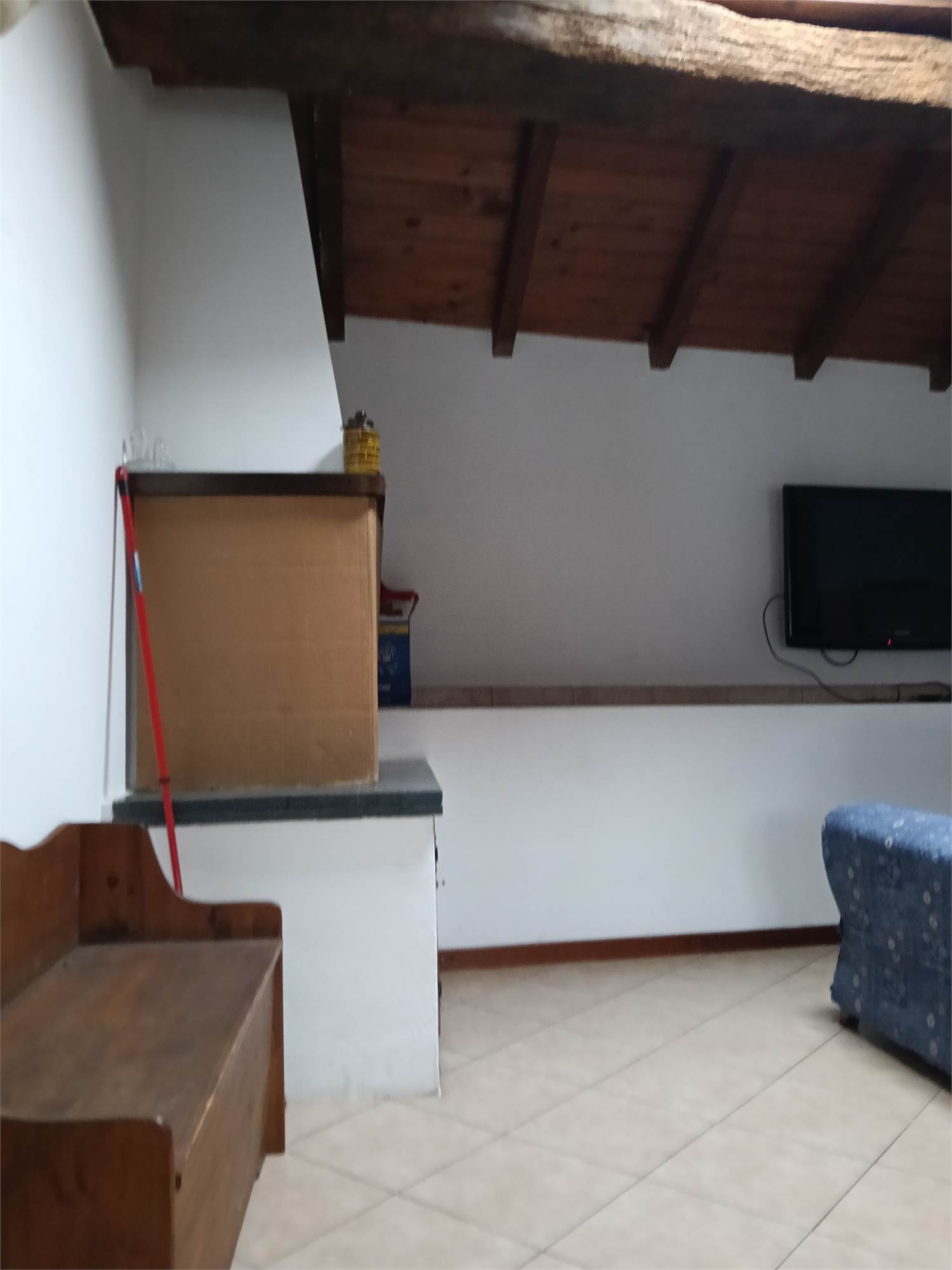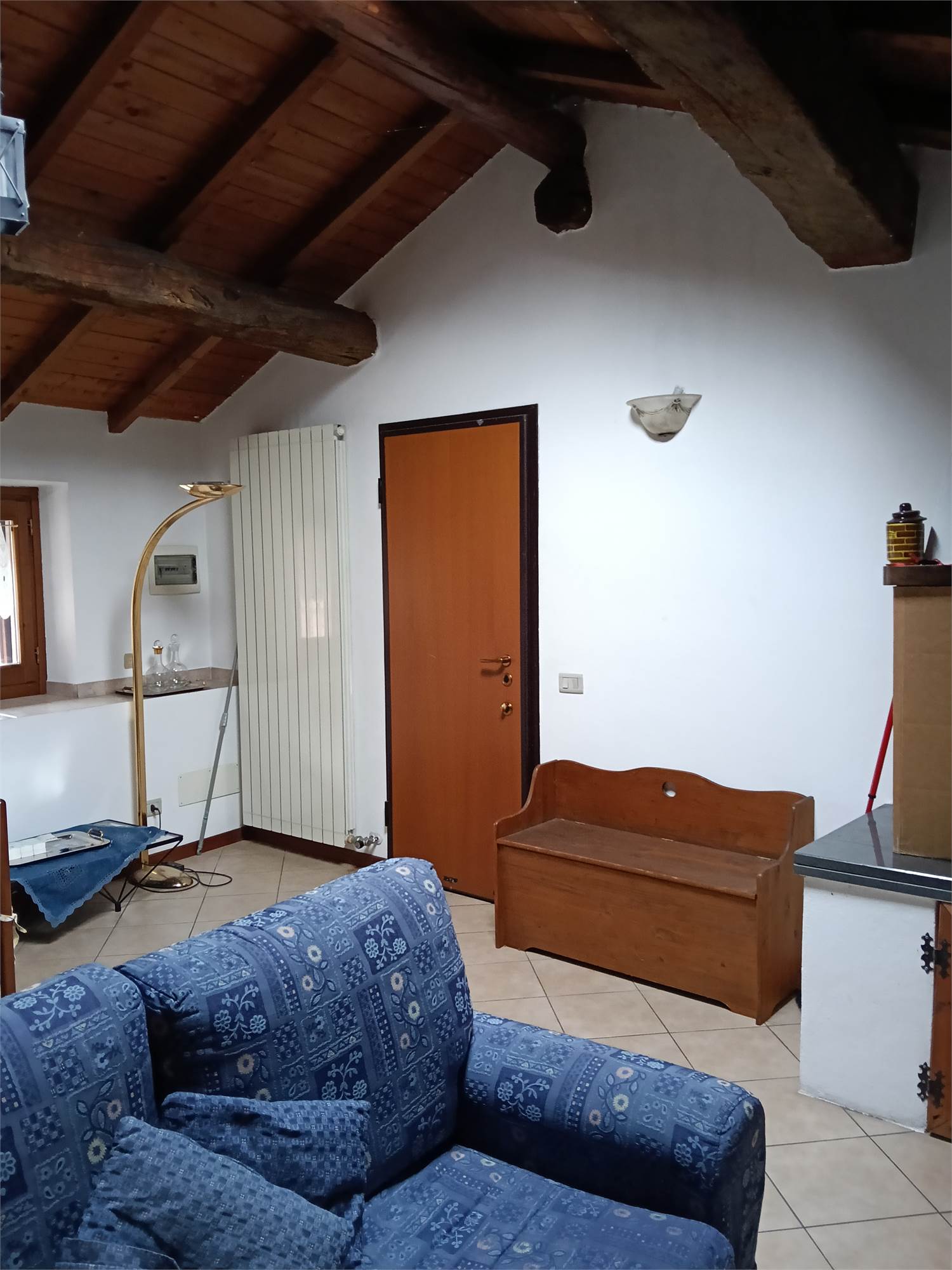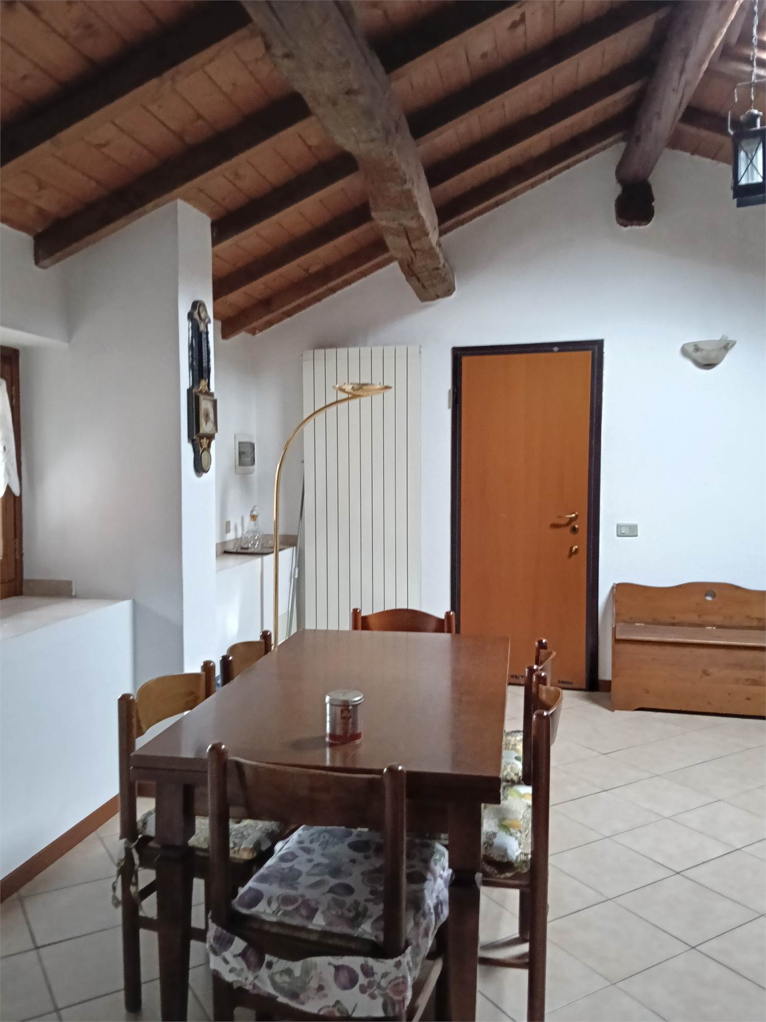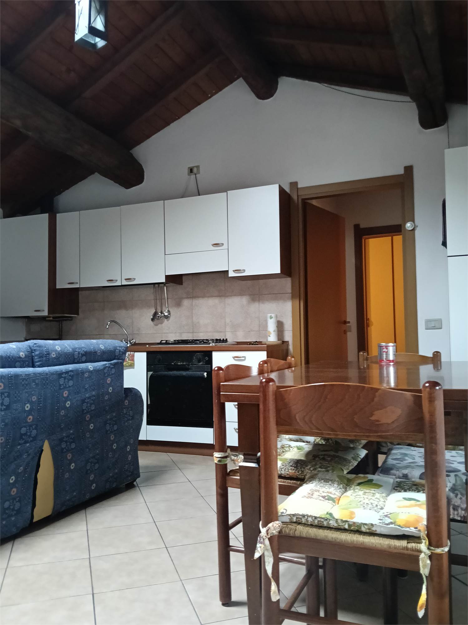 L'appartamento è al piano secondo , si sviluppa su unico livello , è composta da grande zona giorno con camino e cucina su misura e travi a vista , due ampie camere da letto matrimoniali con travi a vista , disimpegno e bagno spazioso con doccia e travi a vista .